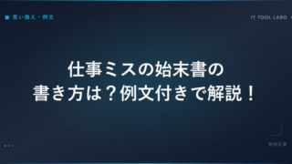 あわせて、始末書全般の書き方については始末書の書き方はどう書く?ケース別の例文を調査、事故関連の始末書については事故の始末書の例文は?場面別の書き方を解説、ミス報告書の書き方についてはミスの報告書で原因と対策の例文はどう書く解説もあわせて参考にしてください。