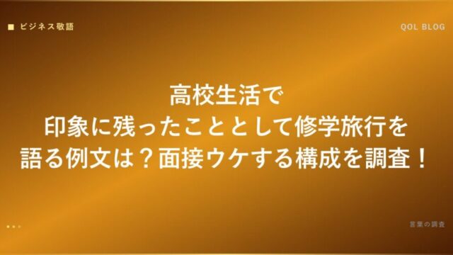 高校生活で印象に残ったこととして修学旅行を語る例文は?面接ウケする構成を調査!