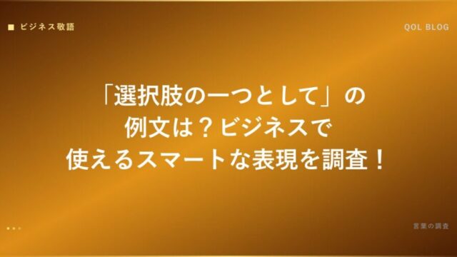 「選択肢の一つとして」の例文は?ビジネスで使えるスマートな表現を調査!