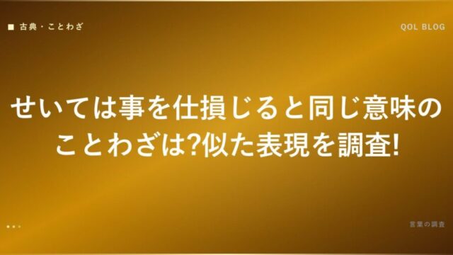 せいては事を仕損じると同じ意味のことわざは?似た表現を調査!
