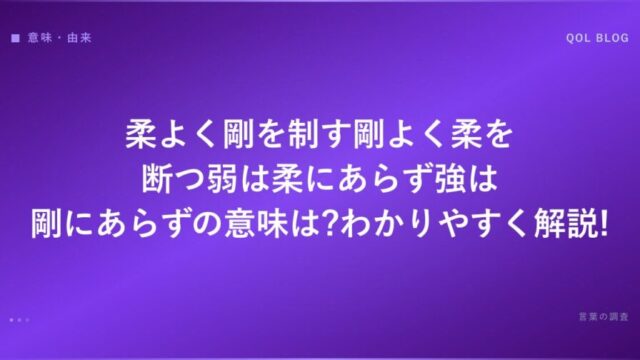 柔よく剛を制す剛よく柔を断つ弱は柔にあらず強は剛にあらずの意味は?わかりやすく解説!