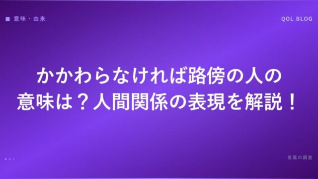 かかわらなければ路傍の人の意味は?人間関係の表現を解説!