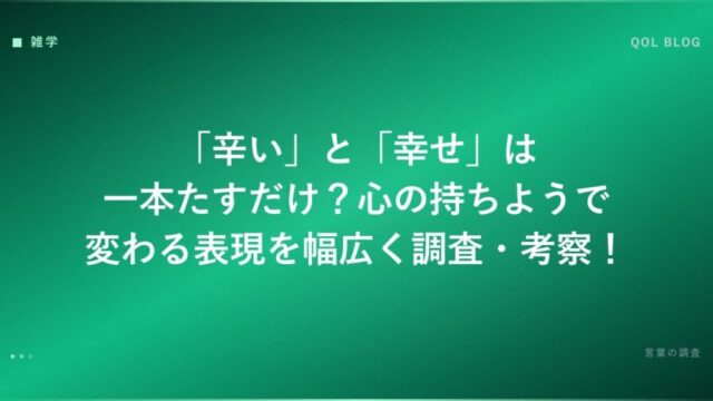 「辛い」と「幸せ」は一本たすだけ?心の持ちようで変わる表現を幅広く調査・考察!