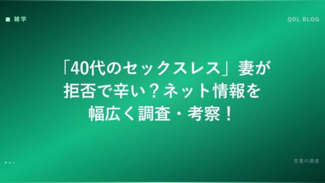 「40代のセックスレス」妻が拒否で辛い?ネット情報を幅広く調査・考察!